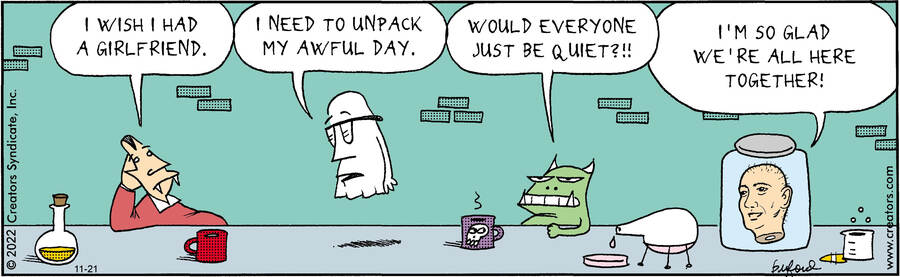 Mark continued to freelance, selling gag panels to magazines and alternative newspapers until early 2006, at which time he began developing Scary Gary. He submitted Gary in December of 2006, and teamed up with Creators Syndicate in February 2007. Scary Gary makes its debut in June 2008.